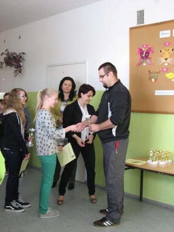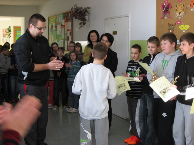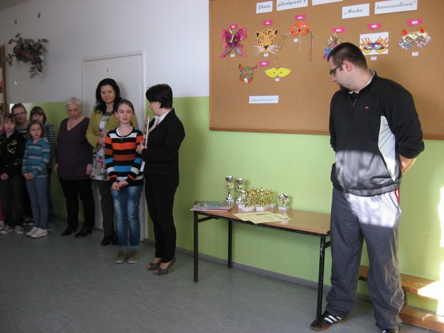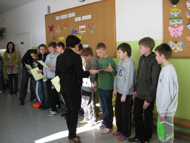 Na apelu zebrali sięwszyscy uczniowie i nauczyciele. Dyrekcja szkoły w ten uroczysty sposób przedsztawiła uczniów, którzy w ostatnim okresie reprezentowali naszą szkołę na konkursach i zawodach sportowych. Pani dyrektor - Bożena Kulik z radością i dumą poinformowała zebranych o sukcesach naszych uczniów. Wraz z gratulacjami otrzymali oni pamiątkowe dyplomy i symboliczne nagrody.