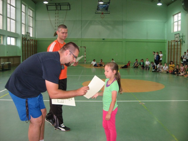 27 czerwca 2013 r. obchodziliśmy Szkolny Dzień Sportu. Jak co roku zawody miały charakter rywalizaji między klasami. Konkurencje były bardzo zróżnicowane: skoki w dal z miejsca, przejście nad piłkami z książką na głowie, rzuty woreczkami do celu, próby szybkości, skoki na skakance. Zawody rozpoczęłysię przy ładnej pogodzie na boisku szkolnym, ale niestety spadł deszcz i zawodnicy oraz kibice musieli przenieść się do sali gimnastycznej.Tam rozegrano pozostałe konkurencje.
