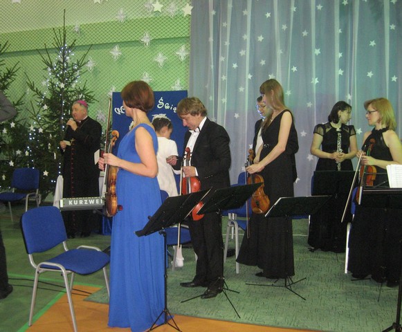 Najbardziej utalentowani uczniowie naszej szkoły zaśpiewali piękne kolędy. Uroczystość uświetnił także występ chóru Kontrapunkt z Ełku oraz muzycy
