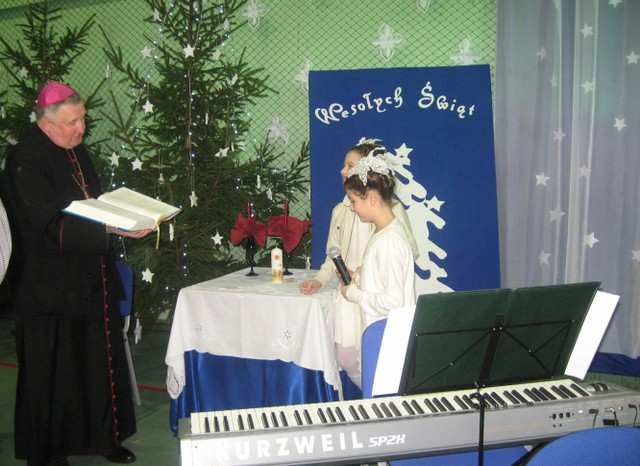 Gminna Wigilia, która miała miejsce w naszej szkole, była bardzo uroczysta. Wzięło w niej udział wielu znakomitych gości, m.inn. Jego Ekscelencja biskup Romuald Kamiński, Wójt Gminy Ełk Antoni Polkowski, radni naszej gminy, dyrektorzy i nauczyciele gminnych szkół i wiele innych zaproszonych osób.