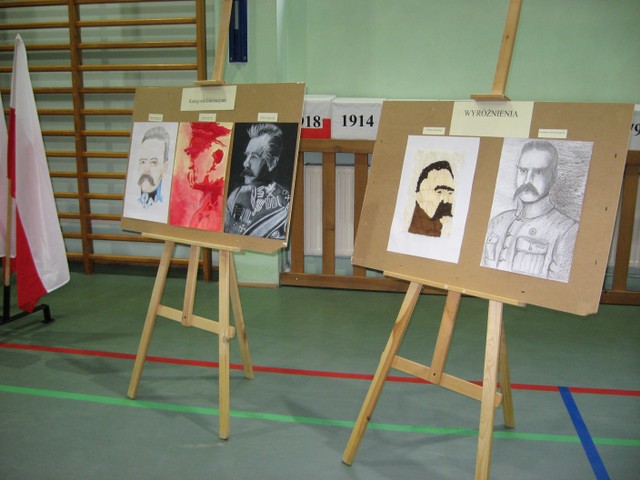 Wyróżnione prace stanowiły dekorację podczas apelu z okazji Święta Niepodległości, a obecnie są wyeksponowane na korytarzu szkolnym przy wejściu do sali gimnastycznej.