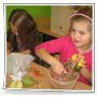 Dzieci wiedzą, że należy myć nie tylko owoce i warzywa przed jedzeniem ale także ręce.Sałatki zostały posłodzone miodem.