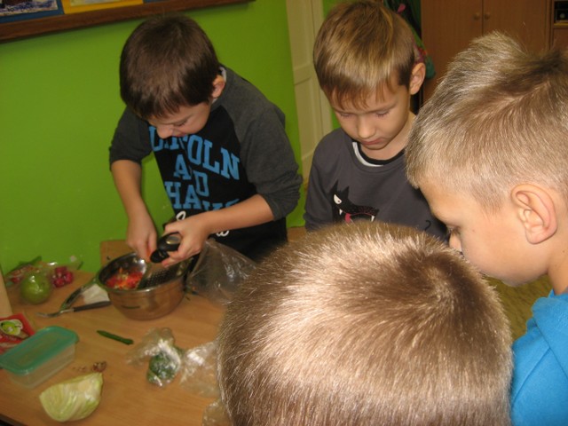 Zajęcia te miały uzmysłowić uczniom dlaczego należy jeść owoce i warzywa. Waże tez było zachowanie higieny podczas sporządzania sałatek.