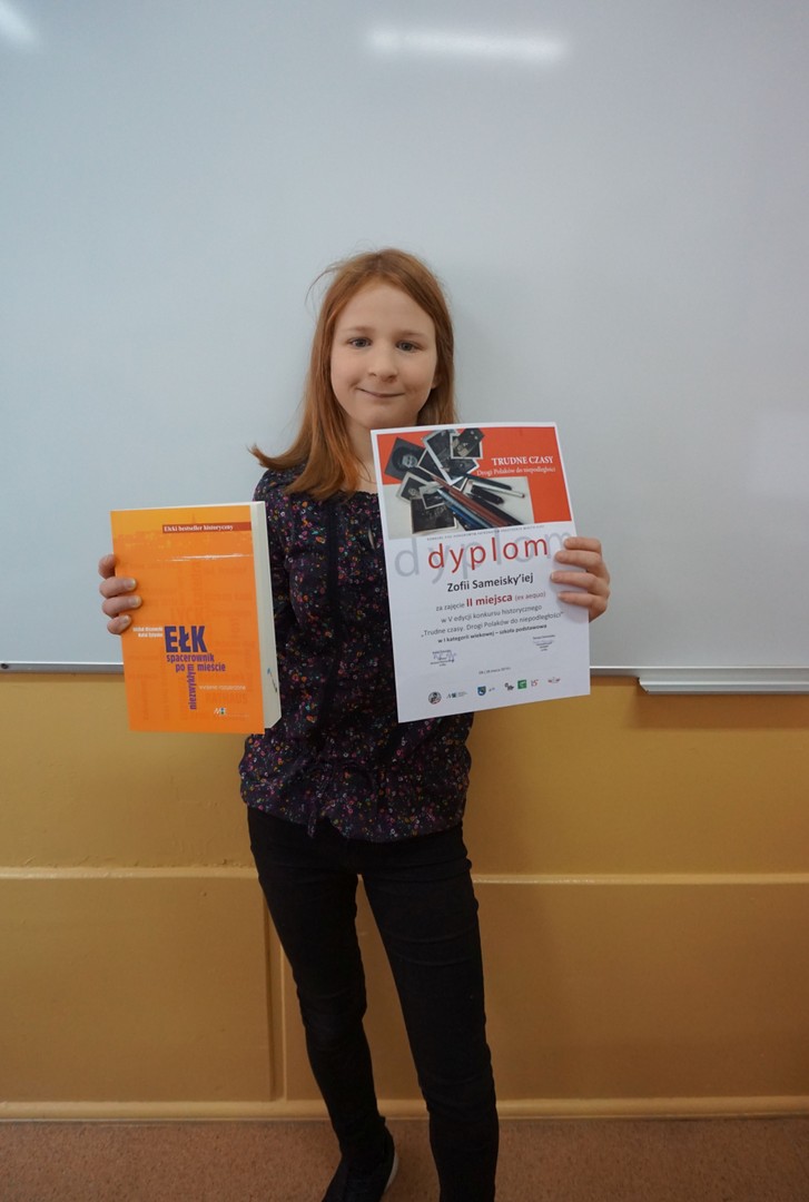 W konkursie w pierwszej kategorii wiekowej II miejsce zajęła Zofia Sameisky - uczennica klasy 8 a.
