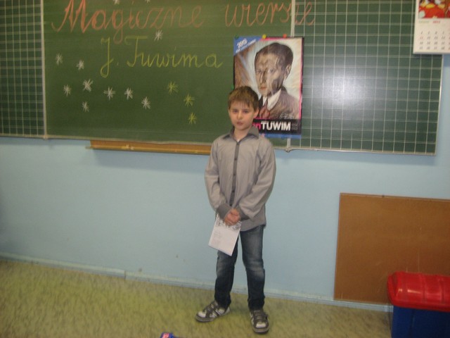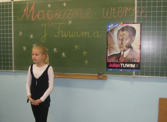 Rok 2013 uchwałą Sejmu Rzeczpospolitej Polski z dnia 7 grudnia ogłoszony został Rokiem Juliana Tuwima, wybitnego pisarza, autora wierszy dla dzieci i dorosłych, tekstów dla kabaretów, redaktora i tłumacza poezji obcojęzycznej. W 2013 roku przypada 60-ta rocznica śmierci i stulecie poetyckiego debiutu Juliana Tuwima. Nasza szkoła włączyła się w obchody tego wydarzenia. 12 grudnia odbył się konkurs recytatorski dla klas trzecich pod hasłem: "Magiczne wiersze Juliana Tuwima". Spośród 30 uczestników wyłoniono zwycięzców i przyznano po dwa I, II i III miejsca.