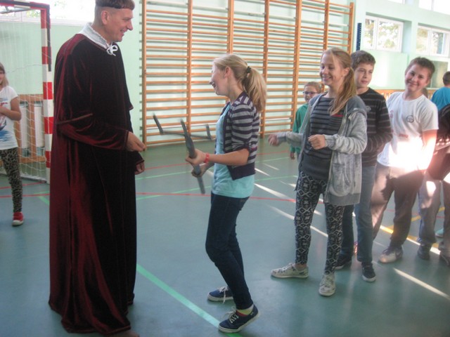 10 października 2014r. mieliśmy okazję przenieść się w dawne czasy i poznać fragment odległej historii. Kolejny raz odwiedzili nas rycerze z Zamku Gniewskiego, którzy prowadzą żywe lekcje historii. Tym razem przybliżyli nam historię starożytnego Rzymu.