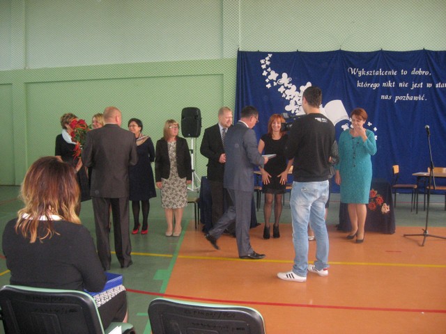 Ten sam program przedstawiony został po południu, kiedy to naszą szkołę odwiedzili przedstawiciele Gminy Ełk wraz z p. Wójtem Antonim Polkowskim oraz dyrektorzy i nauczyciele gminnych szkół i pracownicy Zespołu Obsługi Szkół. Pan Wójt oraz dyrektorzy szkół wrczyli nagrody z okazji Święta Komisji Edukacji Narodowej.