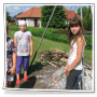 Klasy III a i III b dzień 19 czerwca spędziły poza szkołą. Obie klasy wybrały się na ognisko. Mimo, iż dzień był gorący, kiełbaski z ogniska smakowały wszystkim. Był teżczas na relaks oraz na zawody w grupach. Do szkoły wróciliśmy trochę zmęczeni, ale zadowoleni.