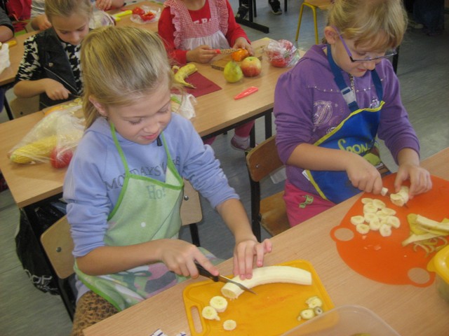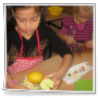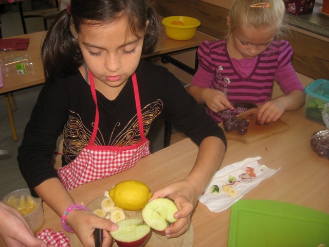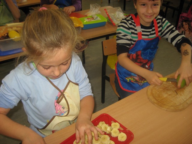 Dzieci wiedzą już dużo o owocach, potrafią je nazywać i rozpoznawać smaki. Znają także zasady higieny podczas przygotowywania potraw.