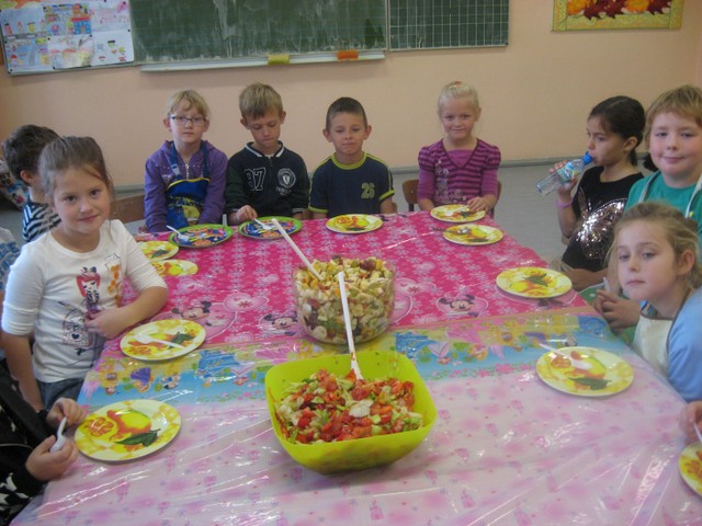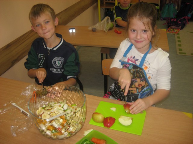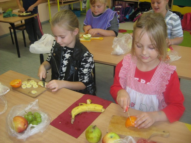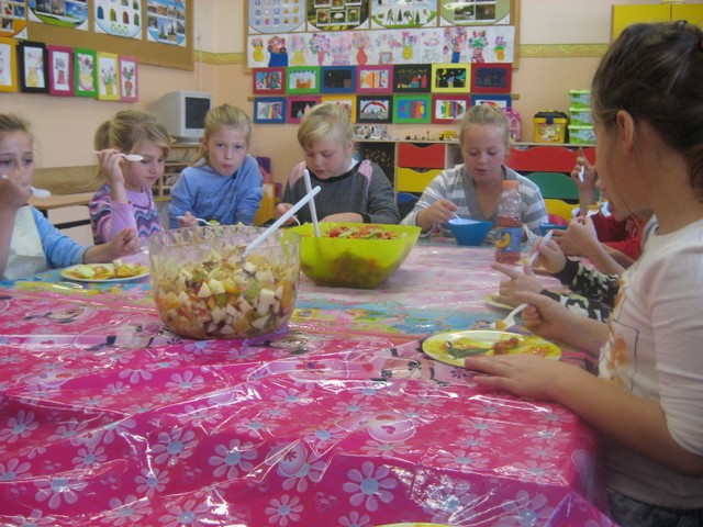 Nie tylko klasy zerowe rozsmakowały się w owocowych sałatkach. Równiez klasa II a przyrządziła ten pyszny posiłek.