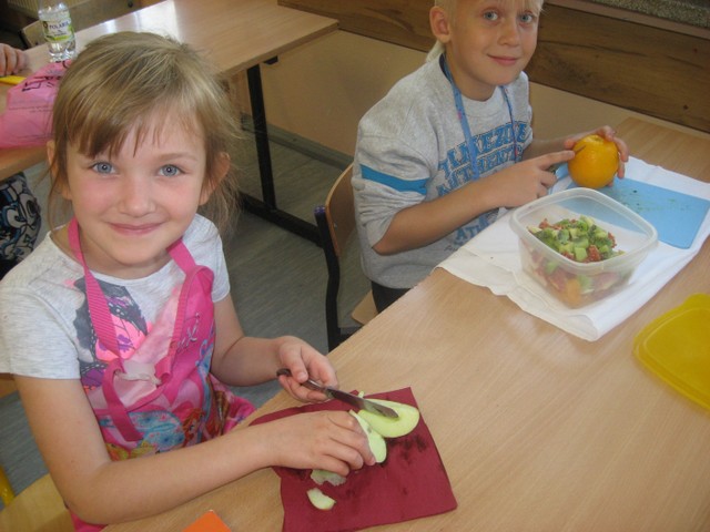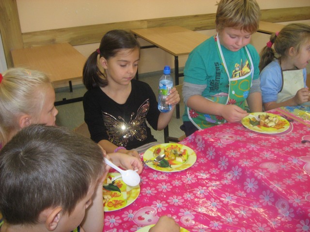 Zatem przygotowanie sałatki odbyło się bardzo sprawnie i było dużo czasu na degustację. Ato, kak widac było najprzyjemniejszym elementem zajęć.
