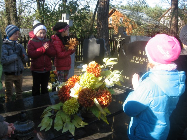 W dniu 29 października 2014 r. dzieci z klasy 0 a i II b odwiedziły miejscowy cmentarz. Okres przed Świętem Zmarłych, to odpowiedni moment na wspomnienie tych, którzy odeszli od nas, czas na rozmowę dotyczącą szacunku dla zmarłych i o odpowiednim zachowaniu się w takim miejscu, jakim jest cmentarz. Dzieci tego dnia zapaliły znicze na grobie wieloletniego Dyrektora naszej Szkoły – Franciszka Skury. Odwiedziły inne groby na cmentarzu (także te bezimienne) i wspólnie pomodliły się za zmarłych.Dzień Wszystkich Świętych to chwila zadumy nad grobami wszystkich zmarłych.