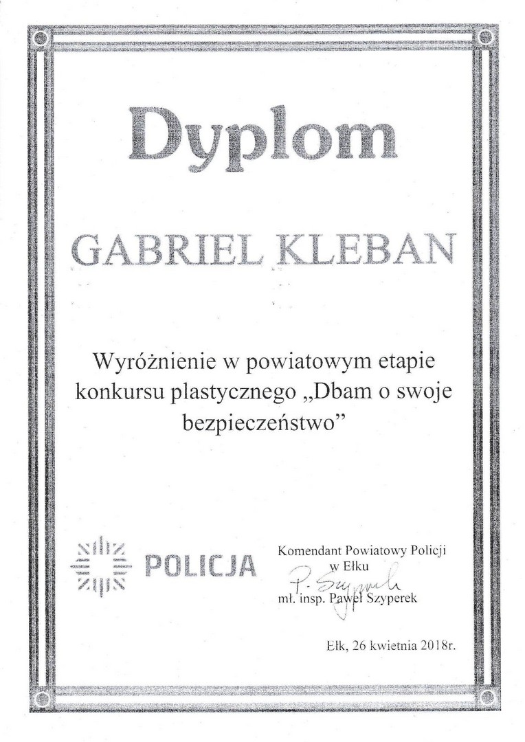 Wśród wyróżnionych znalazła się praca ucznia Szkoły Podstawowej im. Jana Brzechwy w Nowej Wsi Ełckiej, Gabriela Klebana z klasya I b.
