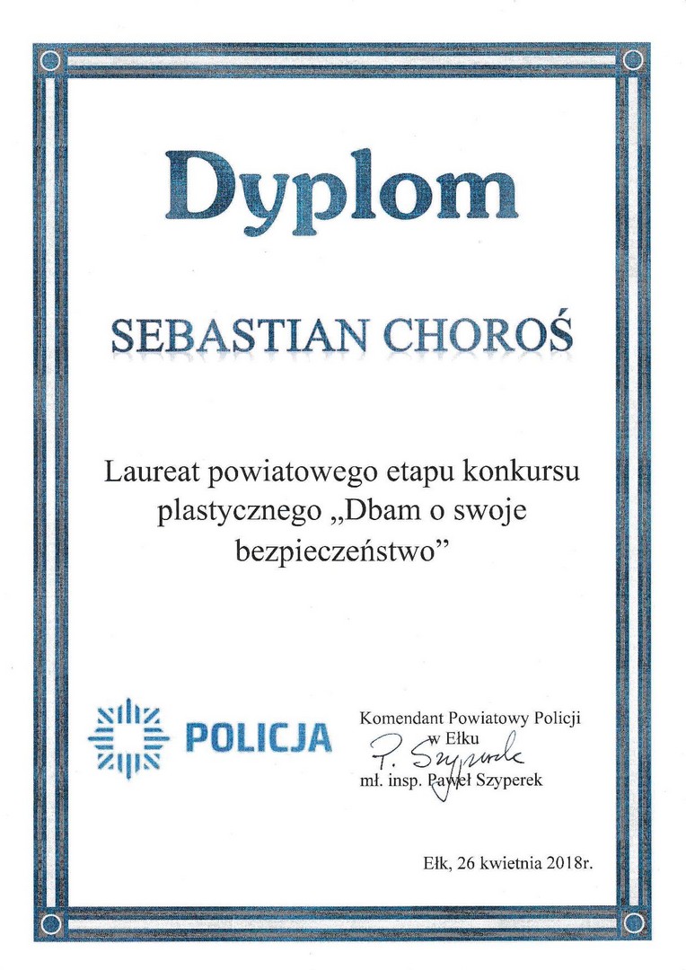 Jednym z laureatów został uczeń Szkoły Podstawowej im. Jana Brzechwy w Nowej Wsi Ełckiej, Sebastian Choroś, klasa I b.