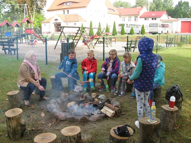 Przy organizacji ogniska, pieczeniu kiełbasek i opiece nad dziećmi wych. Danucie Pawłowskiej pomagali rodzice: Natalia Boguska, Elżbieta Łozińska i Krzysztof Marciniak.