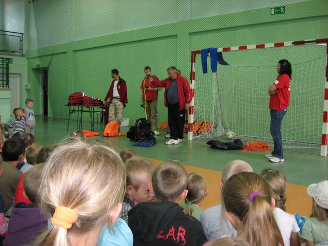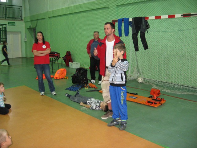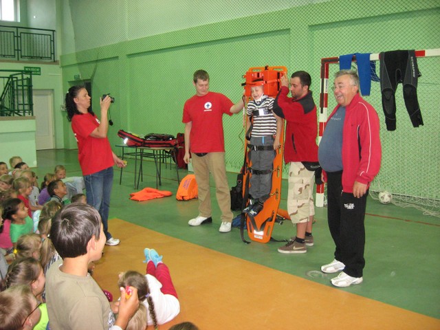 W naszej szkole bezpieczeństwo dzieci jest sprawą najważniejszą. Dotyczy to nie tylko czas spędzanego w szkole, ale także poza nią. Zbliżają się wakacje. Wielu uczniów będzie je spędzać nad wodą. Na zaproszenie dyrekcjii Szkoły odwiedzili nas ratownicy Wodnego Ochotniczego Pogotowia Ratunkowego w Ełku. Ratownicy przypomnieli naszym uczniom podstawowe zasady bezpieczeństwa nad wodą. Dzieci poznały także metody radzenia sobie w sytuacjach zagrożenia życia oraz zobaczyli, w jaki sposób udziela się pierwszej pomocy.