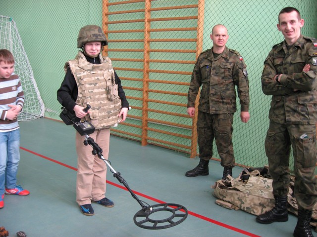 Uczniowie zapoznali się z postępowaniem po ujawnieniu niewypałów i niewybuchów. Poznali także różne rodzaje min, granatów i amunicji. Można było nie tylko zobaczyć różne urządzenia, ale także nimi się posługiwać, a nawet ubrać się w kamizelkę oraz hełmi wypróbować sprzęt saperski.