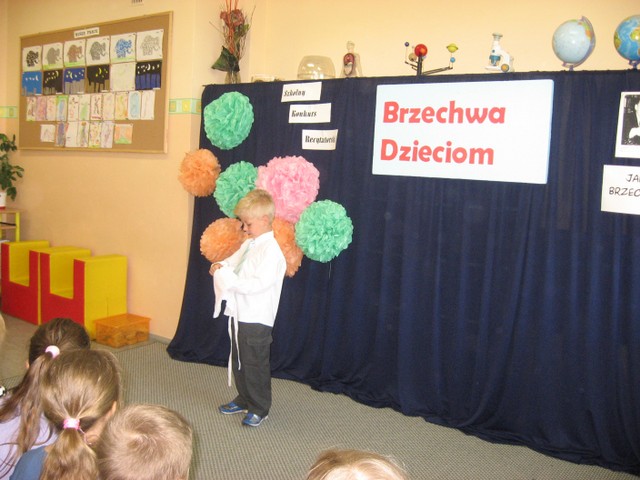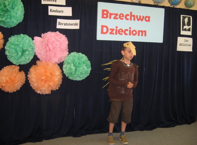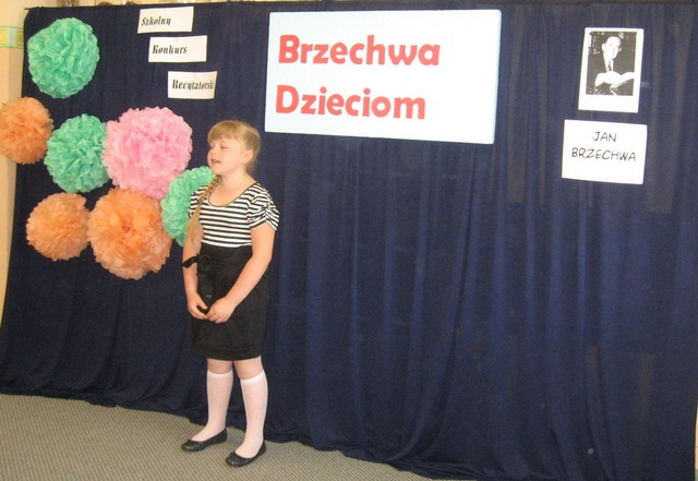 W Szkolnym Konkursie "Brzechwa Dzieciom"wzięło udział 13 uczniów, po dwóch z każdej klasy. Dzieci były wspaniale przygotowane. Bardzo dobrze opanowały utwory i pięknie je recytowały. Coroczny konkurs wierszy Jana Brzechwy przybliża dzieciom twórczość naszego patrona - Jana Brzechwy.