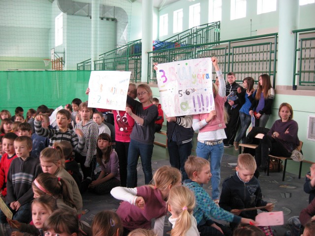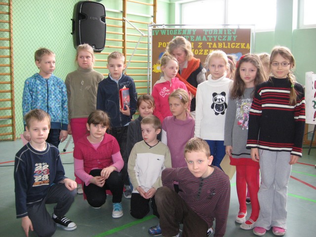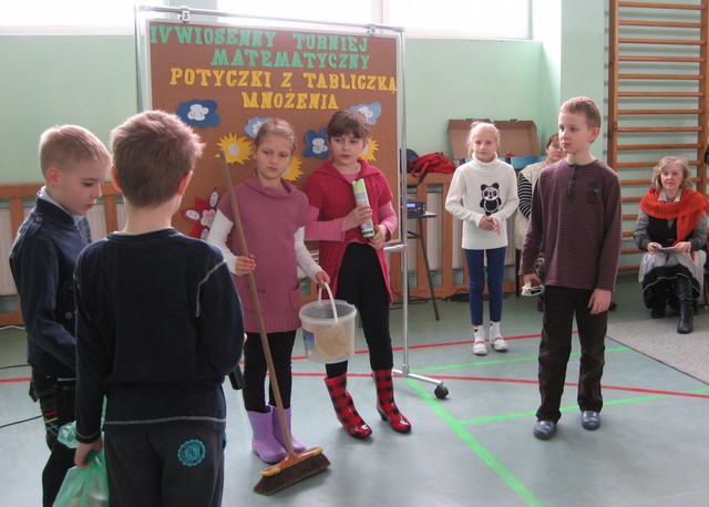IV Wiosenny Turniej Matematyczny w tym roku odbywał się pod hasłem „Potyczki z tabliczką mnożenia”. Celem turnieju była popularyzacja matematyki, która jak wiemy, wielu uczniom sprawia trudności. W turnieju brały udział klasy 0 – III. Zmagania turniejowe poprzedziło przedstawienie w wykonaniu uczniów klasy II b o treści związanej z problemami ekologicznymi współczesnego świata.