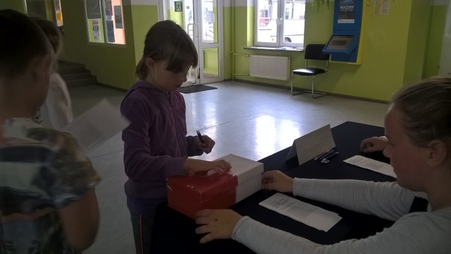 Spośród uczniów klas IV została wytypowana komisja wyborcza w składzie: Aleksandra Składanek kl. IVa, Maja Milewska kl. IVa, Julia Malinowska kl. IVa.