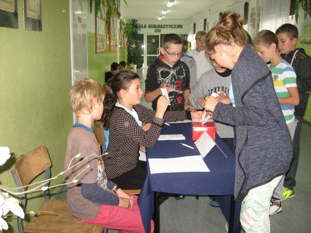15 września uczniowie klas IV - VI wzięli udział w wyborach do Zarządy Samorządu Uczniowskiego.