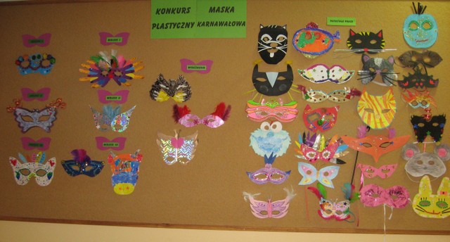 Przedstawiamy wyniki konkursu plastycznego "Maska karnawałowa" dla uczniów oddziałów zerowych oraz klas I- III.