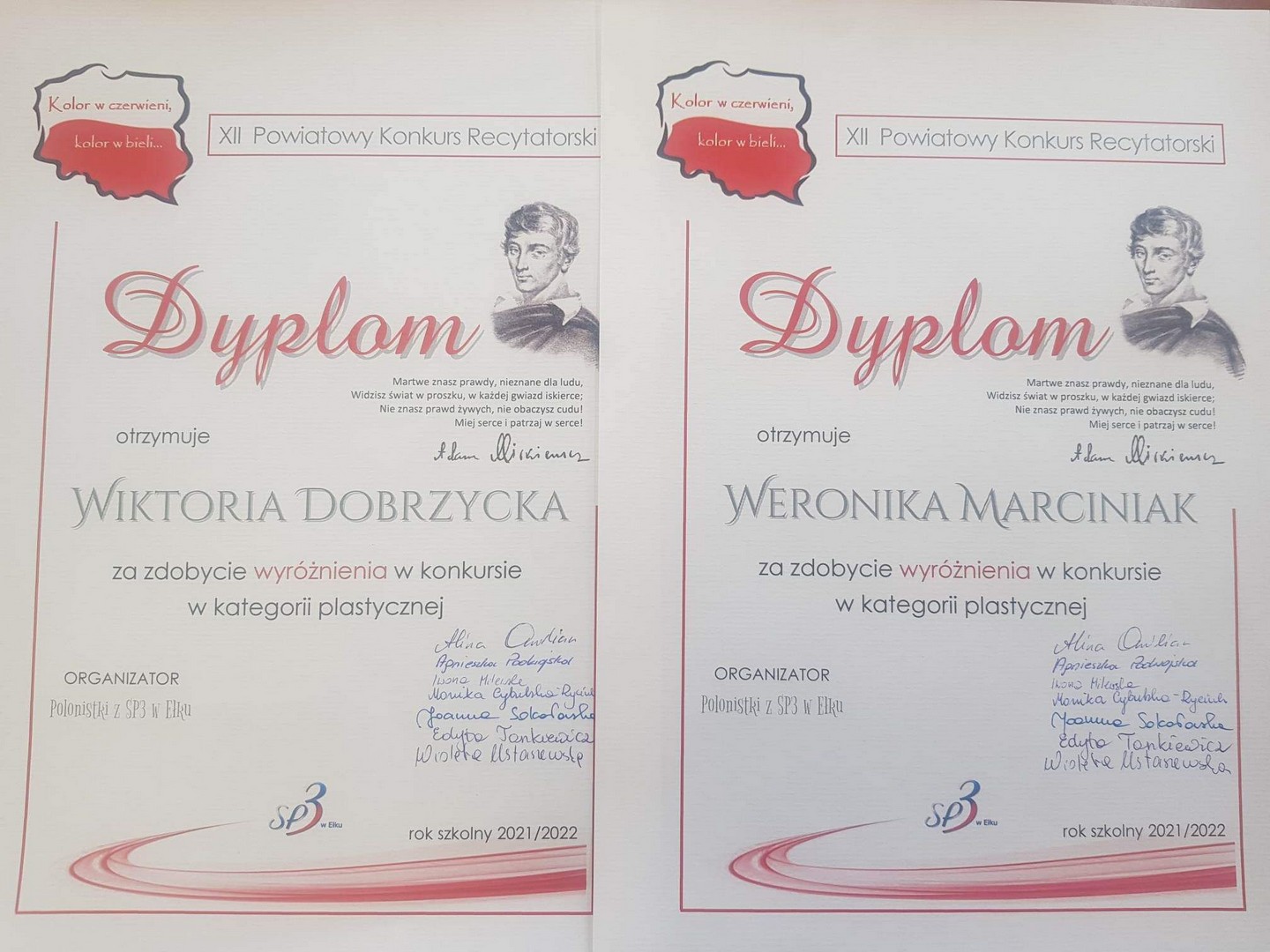 W kategorii plastycznej, uczennice Weronika Marciniak i Wiktoria Dobrzycka otrzymały wyróżnienie.